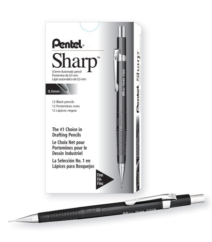 Pentel Sharp Automatic Pencil, 0.5mm Lead Size, Black Barrel, Box of 12 (P205A) Review